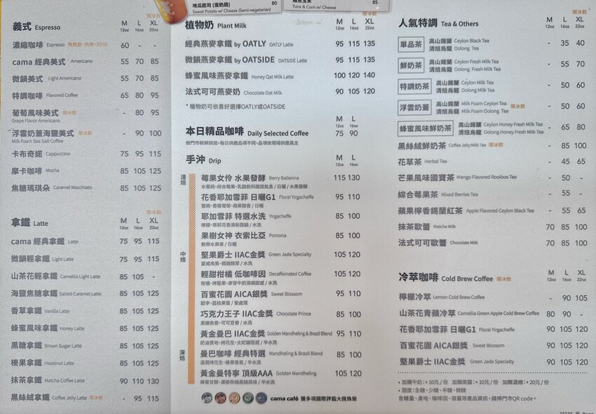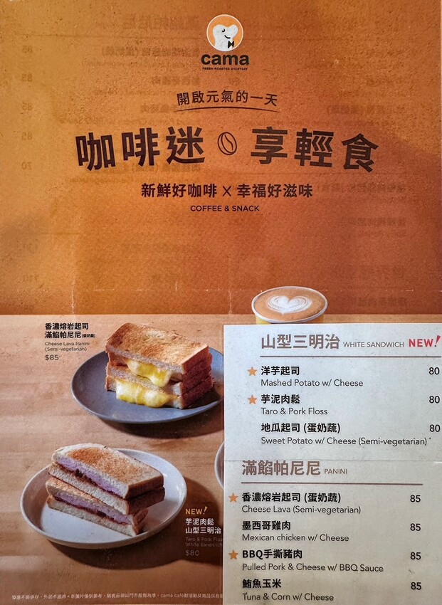 cama café中壢健工店提供的飲品選項當然跟其他cama café門市是一樣,有新鮮烘焙的咖啡豆、濾掛咖啡、手沖咖啡、義式咖啡、拿鐵、茶飲等,但cama café中壢健工店多了現點現做的輕食喔!而cama café中壢健工店也推出了使用LINE點餐的服務,大大減少了在櫃台排隊的時間。