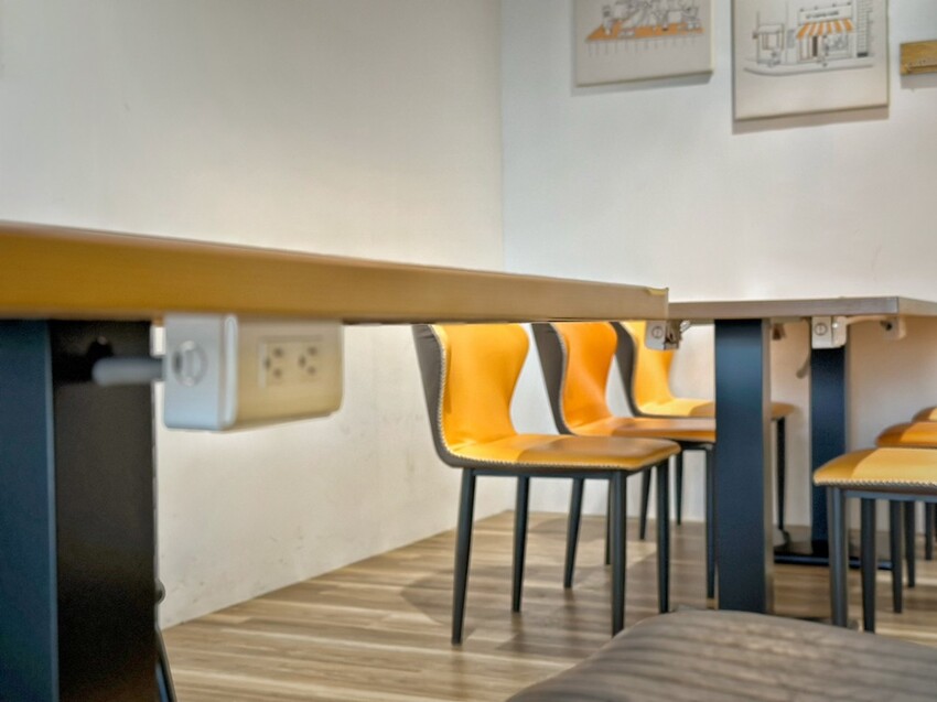 貼心的cama café中壢健工店,除用餐環境舒適就算了,店家也在用餐桌的周圍設計了插頭給有需要的客人使用,這樣的設計讓不少SOHO族、文創工作者或是商業討論都不怕3C產品遇到沒電的窘境,且用餐時間沒限制,著實讓辦公者可以無壓力的使用這舒適的環境。