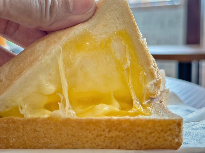 兩款香濃的起司熔岩在一起,外層吐司烤得酥脆,再搭上內餡牽絲的起司,吃起來真的很過癮。