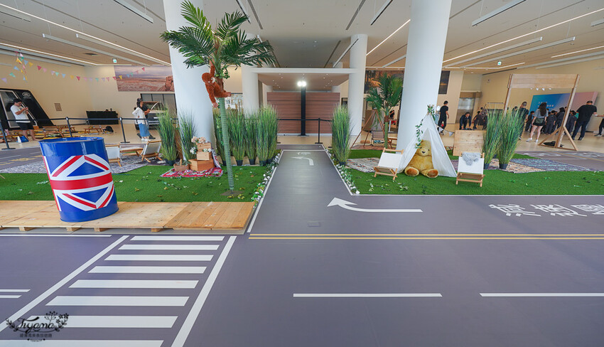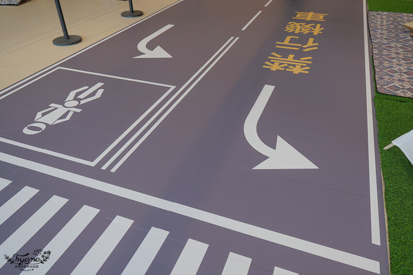 到了最好玩的「交通駕駛規則上路體驗」,可樂姐姐帶大家走一圈馬路路線,告知大家地面上的路線與斑馬線、平交道、紅綠燈、交通號誌…等等。