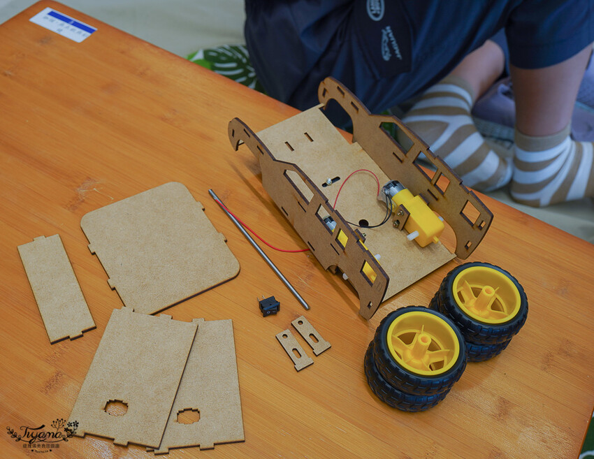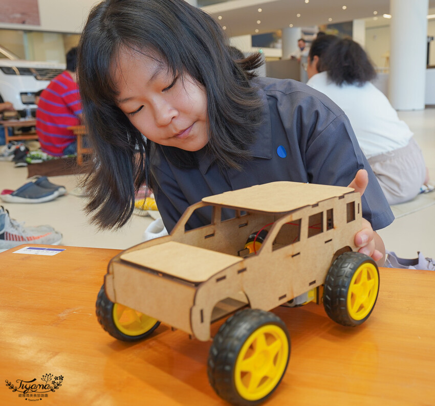 親子手作DIY故名思義就是爸媽也要來幫忙,感覺幾乎都是靠緹爸巧手組裝,因為電動馬達部份是事先組好,相對難度不會很高,花點時間就能完成,期間活動工作人員也會協助大家。
