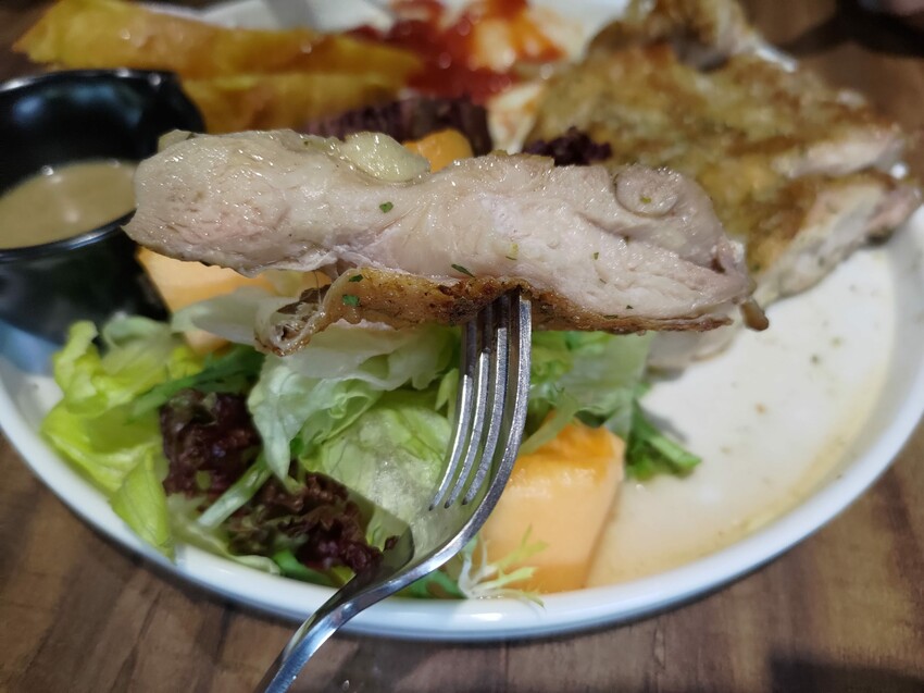 超大雞腿排,軟嫩多汁,香料裡面有一絲絲很細微的甜,很巧妙的中和掉雞腿本身帶有的雞汁肉味。