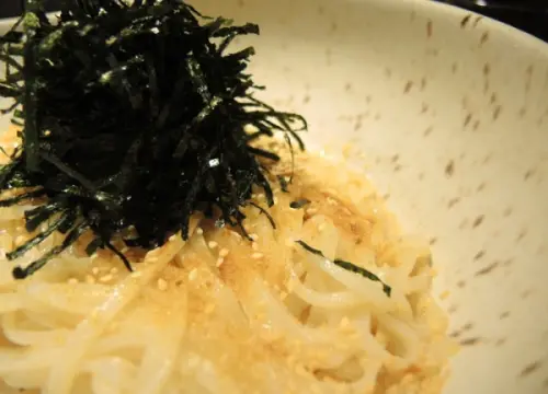 這次點的是「特製柴魚醬油烏龍麵」,裡面有附一大片的牛蒡天婦羅