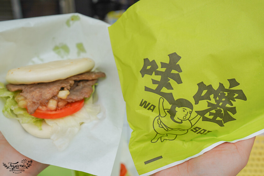 哇…好亮眼的”哇噻”青蘋綠外袋,看了好健康,大部份刈包口味都有滿滿的生菜也好健康。