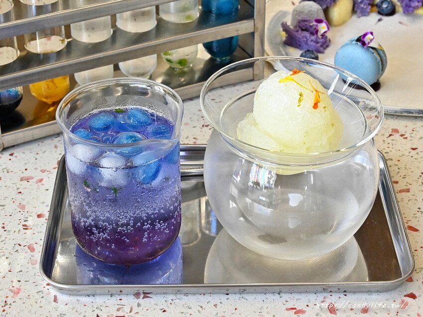 不只名字夢幻,飲品也超美的!採用繽紛的蝶豆花冰球,加入桂花釀蜂蜜渲染出夢幻藍紫色,搭配檸檬雪酪,微酸風味非常適合夏天來上一杯