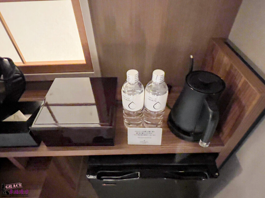 日本的商務旅宿很少有在附贈礦泉水,四條室町Resol飯店竟然還貼心準備了礦泉水,熱水壺也放置在此。