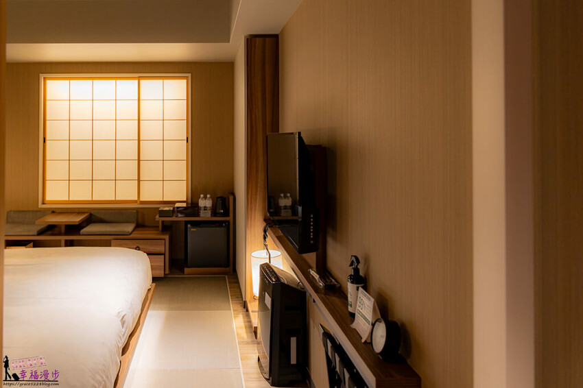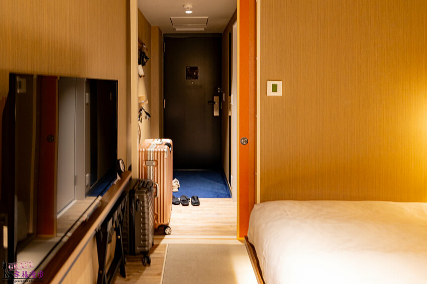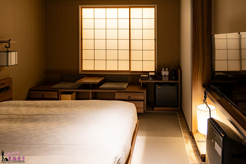 辦理好入住就趕緊到房間休息,房間設計是採和洋式的房型,進入房間是需要脫鞋才可以進入,廁所和床的空間還有一道拉門做區隔喔!