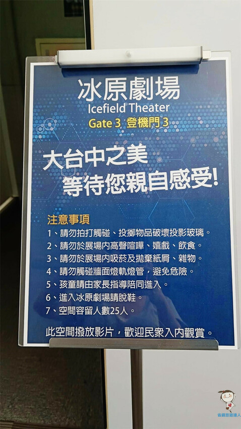 這個冰原劇場是必須脫鞋才能進入的,不過比起其他館區,冰原劇場跟我的想像有所落差