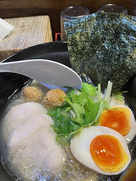 裡面除了有叉燒,雞肉丸子,還有一整個半熟蛋等