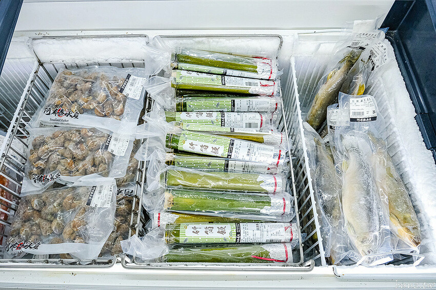 再過來還有巨無霸母香魚、冷凍鳳螺,就連竹筒飯這裡也有賣,很有戶外烤肉的氛圍。