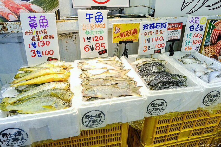 再往後頭走則有魚鮮,現場有午魚、黃魚、珍珠石斑、白鯧等,也很受婆婆媽媽們的喜愛。