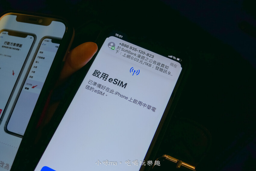 兒子的則是使用eSIM的威訊暢遊款,每天3GB高速流量,之後降速至128kbps(每天重置流量),計算方式是以當天23:59:59為第一天,以台灣時間計算,而且還可以當熱點分享,因為eSIM是比較新的技術,所以有限定適合的機型才可以使用,如果你的手機太舊或是非以下圖示內的機型,就只能使用換卡的SIM卡喔