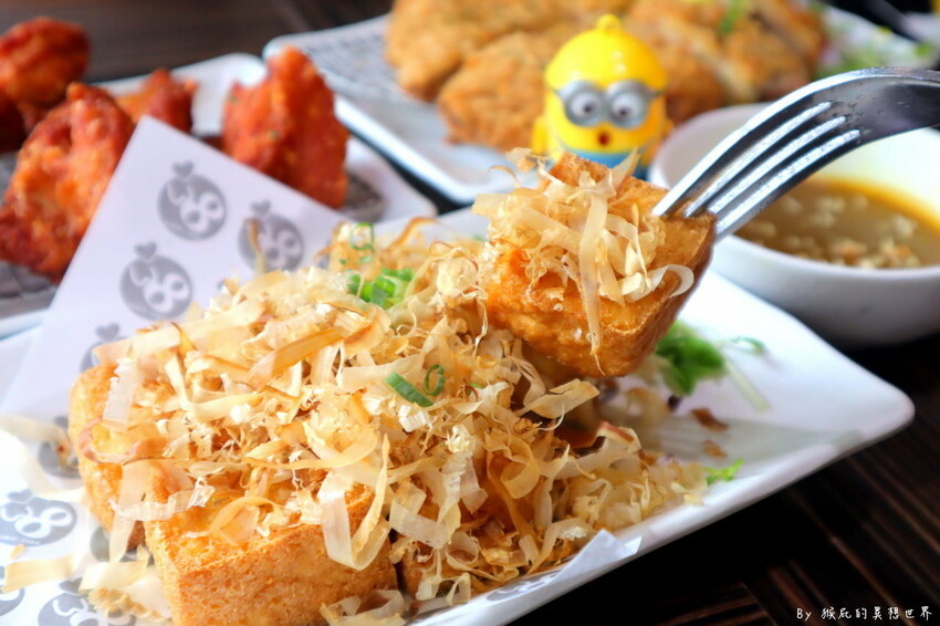 咖哩炸蛋豆腐菜單上寫著必點,當然要點來吃看看,剛上桌以為章魚燒,上面有柴魚好日式,咖哩醬是另外附的,可以先吃原味在沾醬,豆腐有六大塊,外皮炸得酥脆且不會很厚,雞蛋豆腐十分滑順軟嫩,搭配咖哩還滿特別的,第一次吃到炸豆腐配咖哩很有創意,在MR.38感覺好像不管甚麼沾咖哩都百搭。