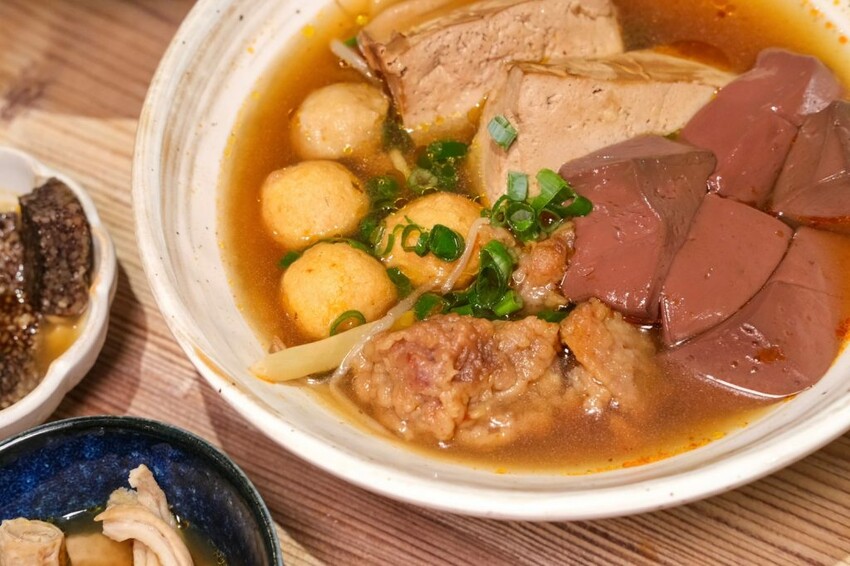 ▼裏頭的食材都滷的很入味 ,綿豆腐綿密軟嫩多汁,嫩鴨血滑嫩Q彈無腥味,其中排骨酥香甜充滿咀嚼感,吸滿湯汁精華又有滿滿肉感,意外的組合讓我相當驚喜!