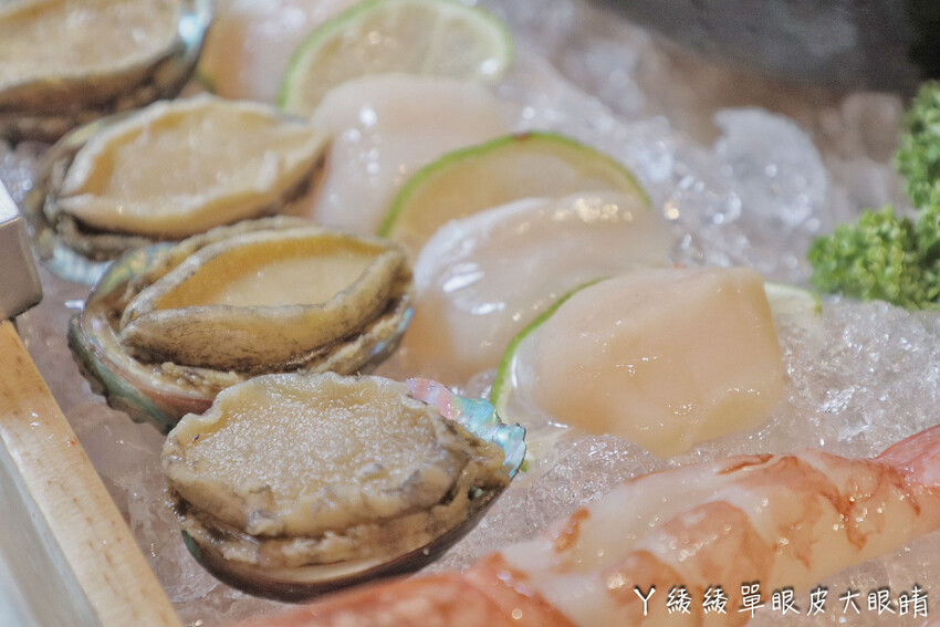 活凍鮑魚的口感有夠Q彈!又大又鮮美的干貝推薦必吃!想要全熟的干貝可以煮三分鐘左右的時間,但因為這個是日本生食等級的干貝,ㄚ綾綾建議涮個一分半鐘就可以撈起來吃囉!