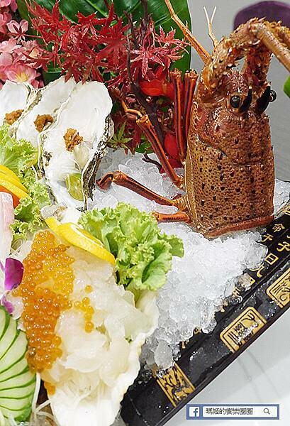 七月份活動訂桌菜就送一隻波士頓龍蝦,將身體的部位做成刺身,再加上不少的鮭魚卵,瑪姬第一個就先把它夾入盤中,新鮮的龍蝦刺身彈脆鮮甜,吃過會讓人欲罷不能!