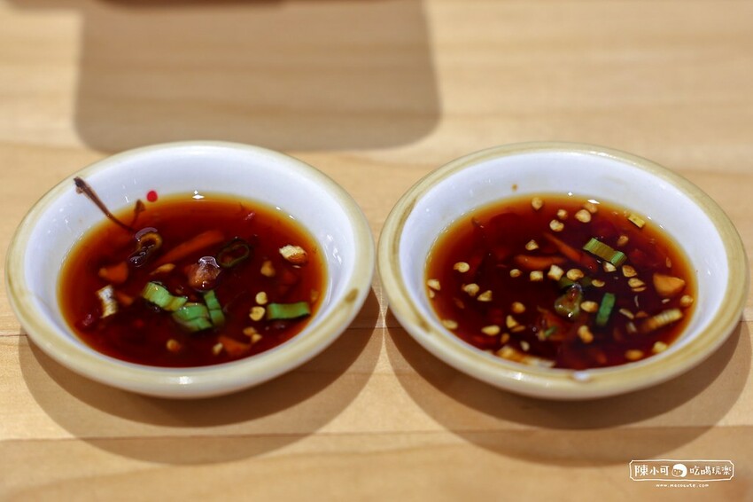 自助區有提供鍋貼沾醬,大桶裝著辣椒醬油還分微辣和大辣,看起來很強呢!