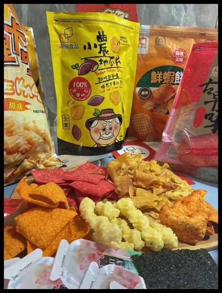 澎拜包($198):鮮蝦餅(原味)、卡哩卡哩(甜味)、小農地瓜片、大豬公