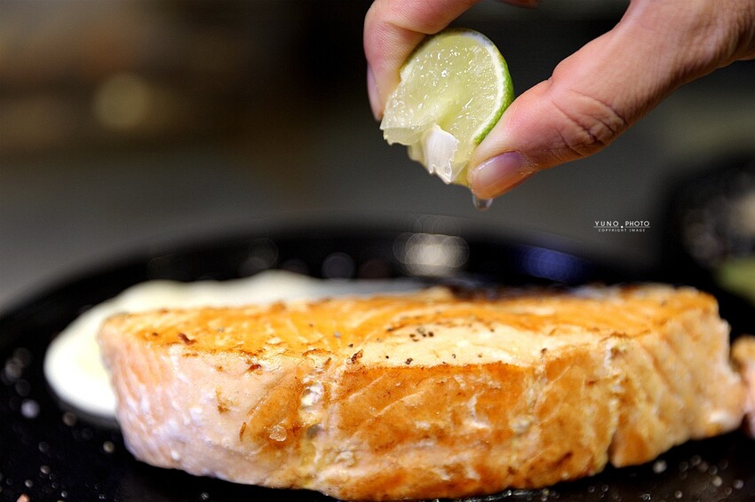 厚切鮭魚煎到嘟嘟好 吃起來很軟嫩 肉汁鮮甜 保留魚皮膠質滿滿