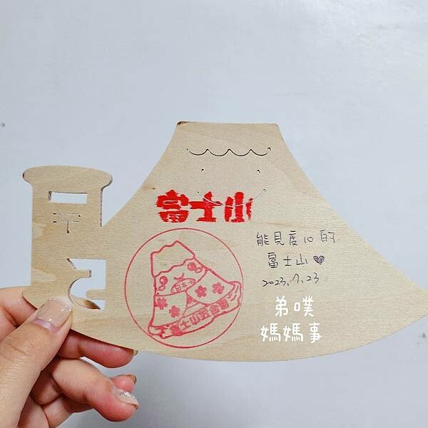 因為是跟著整個很趕,匆匆一寫壓上日期作為紀念。導遊介紹這明信片是用富士山上的木頭所製作的喔!
