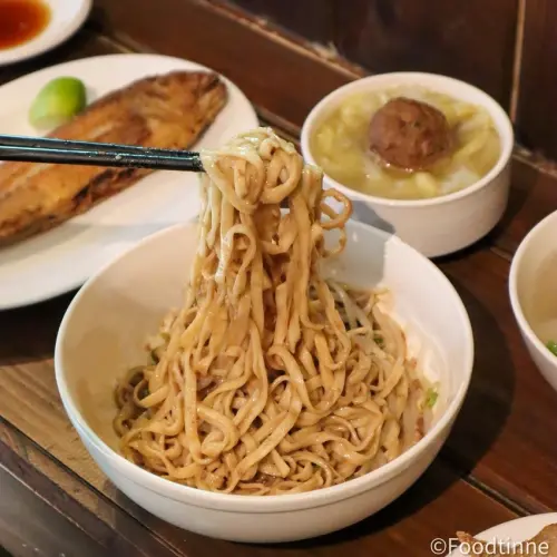 炸醬感覺很像更鹹一些的肉燥,拌麵味道剛好,讓人一口接一口,停不下來。加上蒜泥和迎客松自製辣椒後,增添了更多層次風味,這碗秒殺!