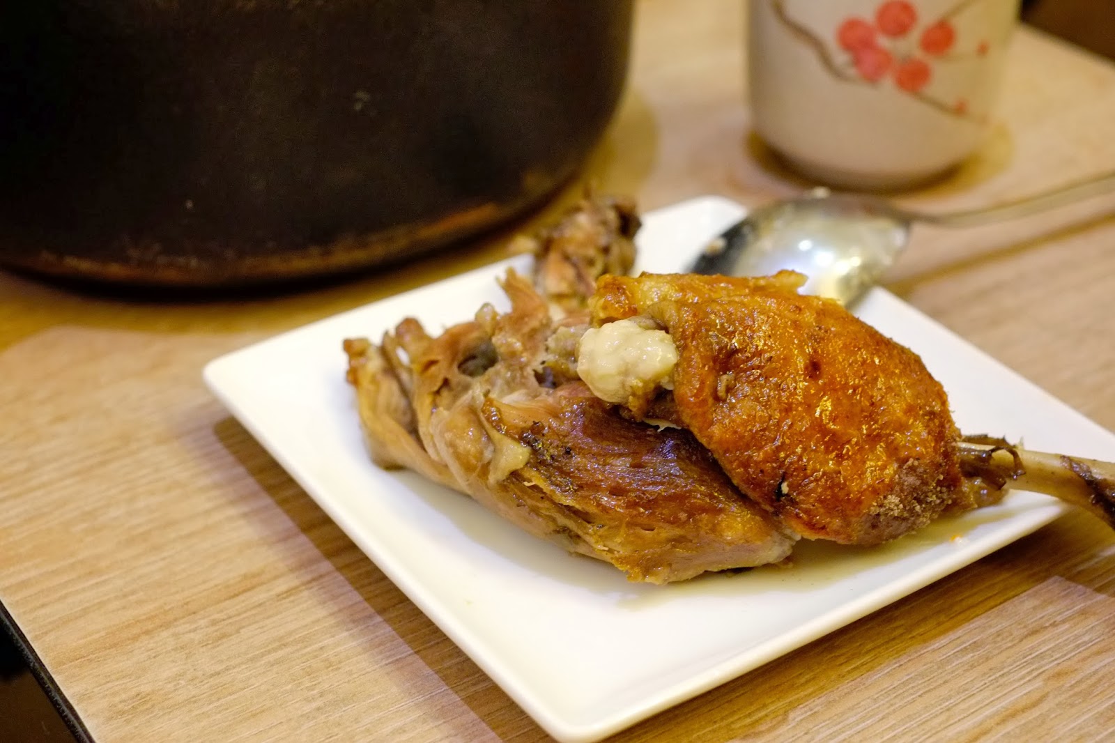 杭州一品鴨,鴨腿有先處理過,加上梅干菜跟白菜,最上面鋪上些甜椒跟碗豆,色彩豐富,味道層次十足,鴨肉真如店員所說輕輕一夾就骨肉分離,油亮亮外皮是酥脆,肉是軟嫩,不愧是招牌必點的功夫菜,值得大推,深受大家好評!