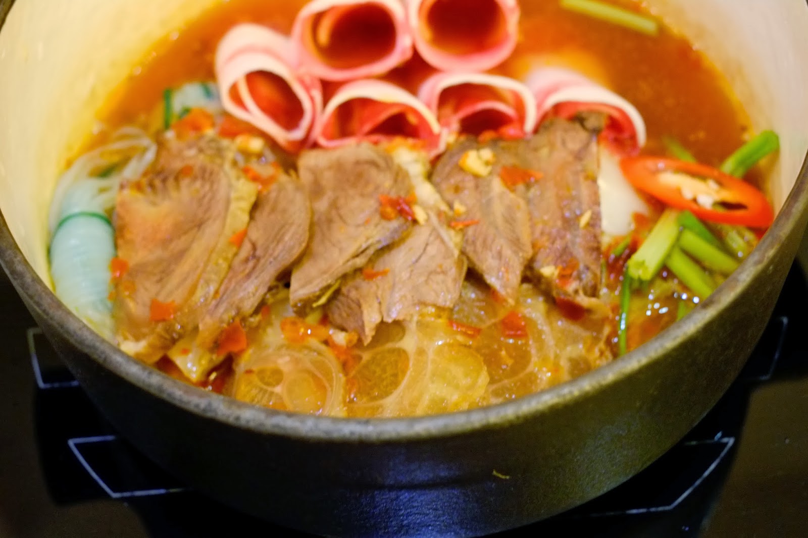 湘味狠水牛燒,有牛肉片、牛腱、牛筋,在加上特製辣椒醬下去燉煮,店員建議不要煮太久,有點微辣感,牛肉片香嫩好吃,牛腱帶點咬勁滷得很夠味,牛筋沒吃到…不過在辣一點會更喜歡