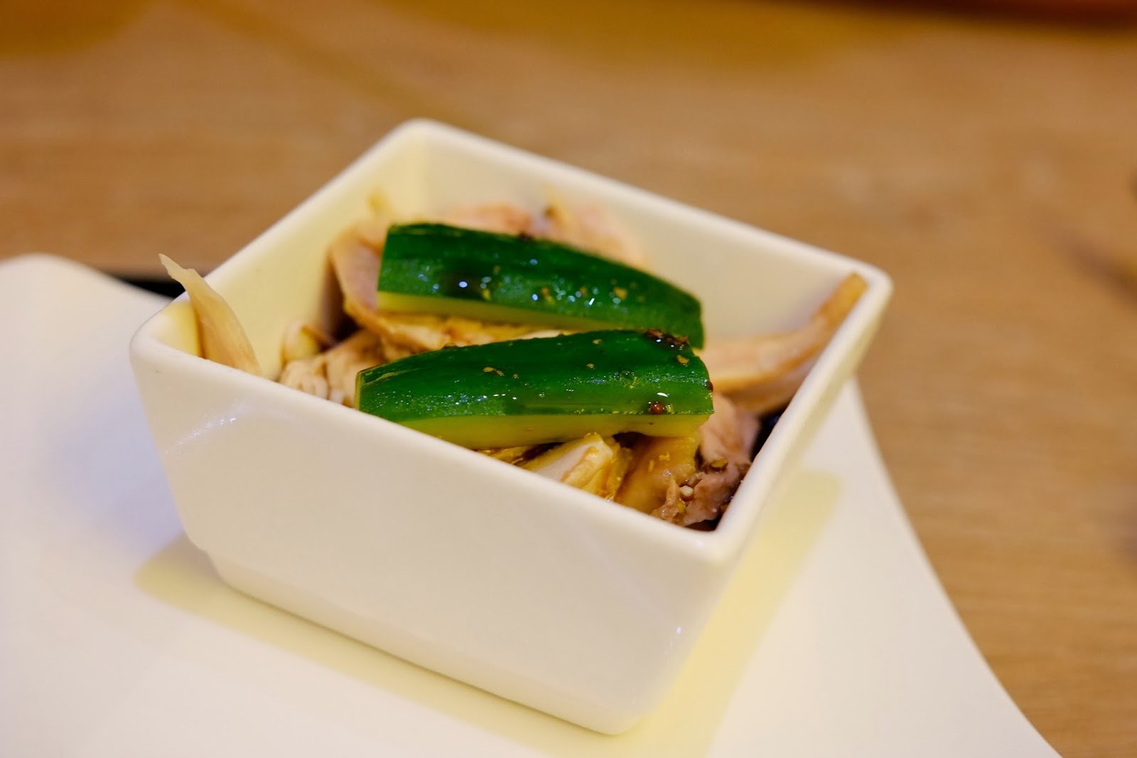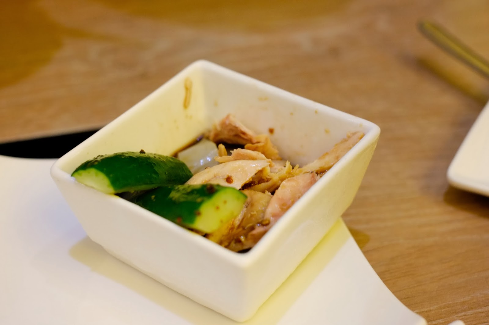 山東燒雞,雞肉絲上面壓著兩片小黃瓜,下面是涼粉,口味有點特別,雞肉絲應該是比較乾的雞胸肉,需要點醬汁入味,涼粉QQ的好吃。