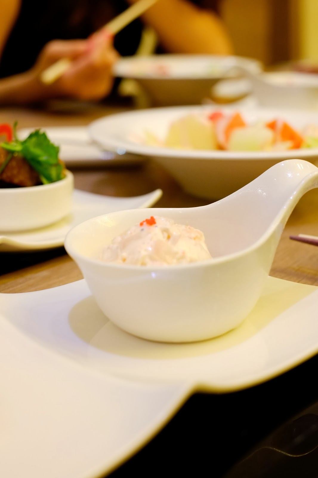接著主餐前會先上桂花醋讓口腔清一下,帶點淡淡桂花味,不會很酸,喝完就可以等待主餐