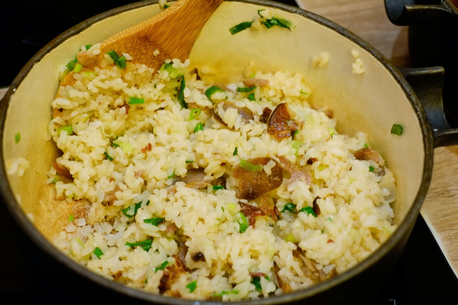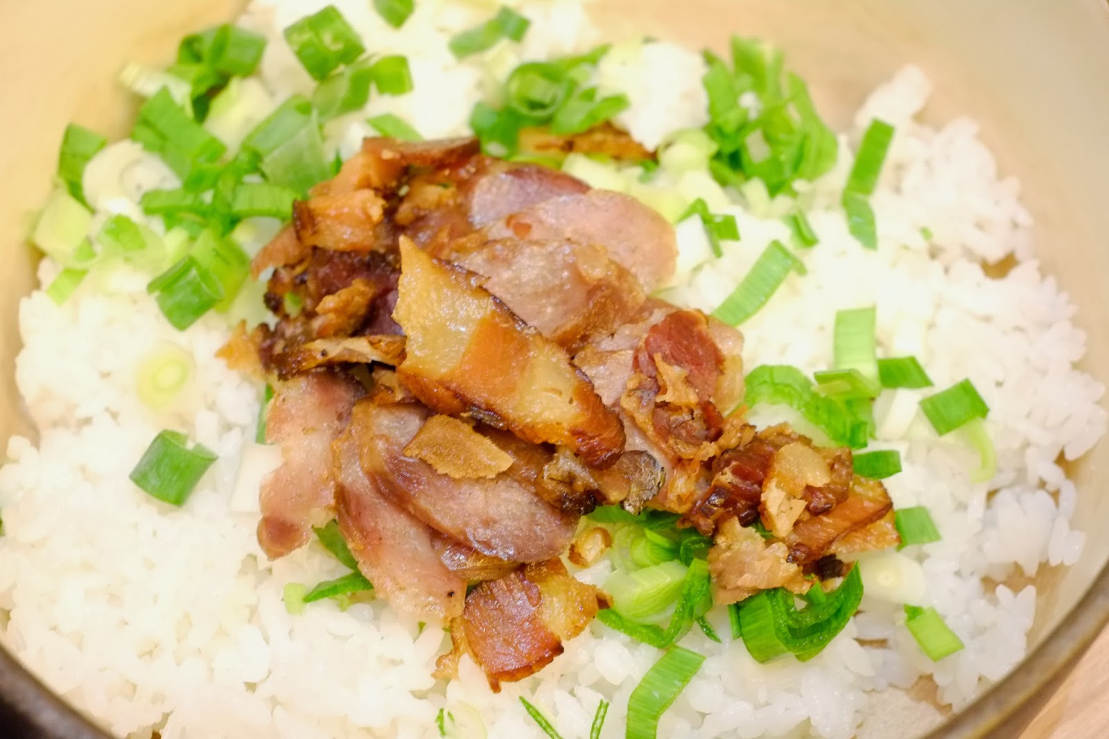 菜飯是加了青江菜,本身口味比較淡,比較適合重口味的主餐,例如一品鴨或水牛燒。另一道臘味飯則是加了臘肉跟醬汁下去炒,味道比較重,能吃到臘肉跟米飯香,單吃也是很不賴的炒飯