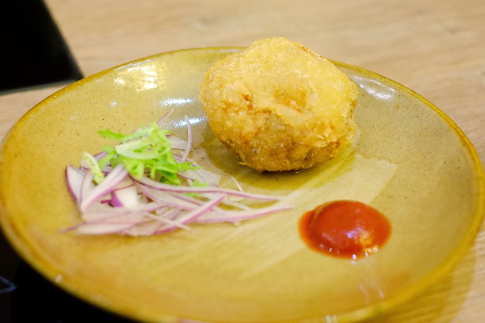 牡丹鮮筍,一球像馬鈴薯泥,但是是竹筍,加上美乃滋,簡單卻很美味,讓人一口接一口停不下來。
