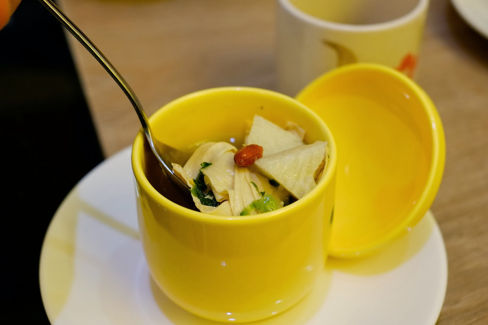 扁尖筍雞湯是筍子加上雞肉,雞肉燉到夠嫩好吃,湯帶有筍香