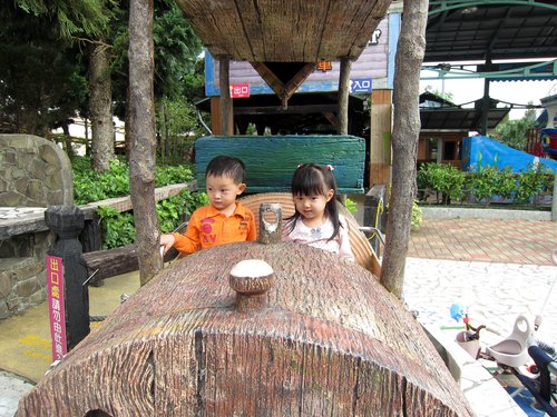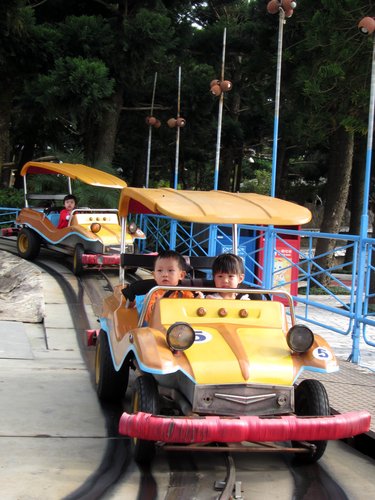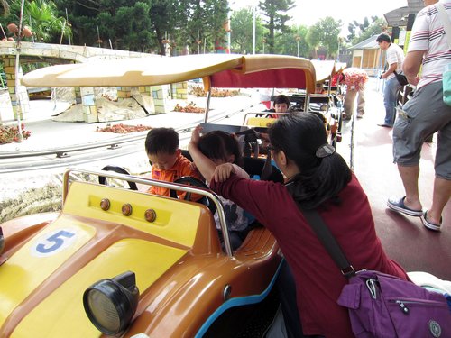服務人員趕緊過來告訴我們這要靠上下壓的力量車子才會前進(有點像打水那樣)