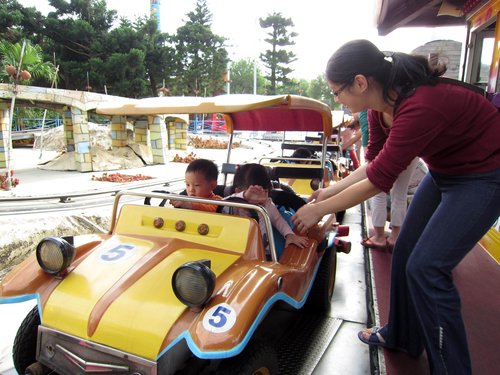 我們就到旁邊的[嘟嘟車]排隊等候上車