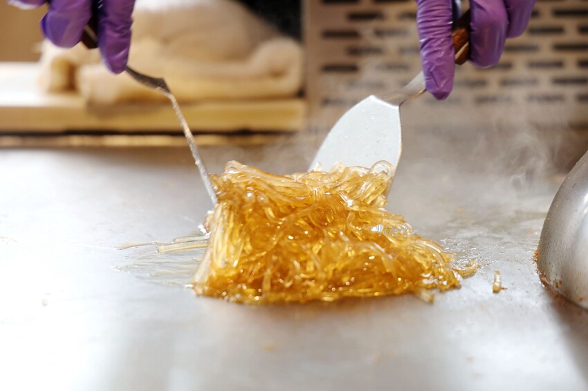 在師傅的巧手下,葛粉逐漸變成晶瑩剔透的模樣。