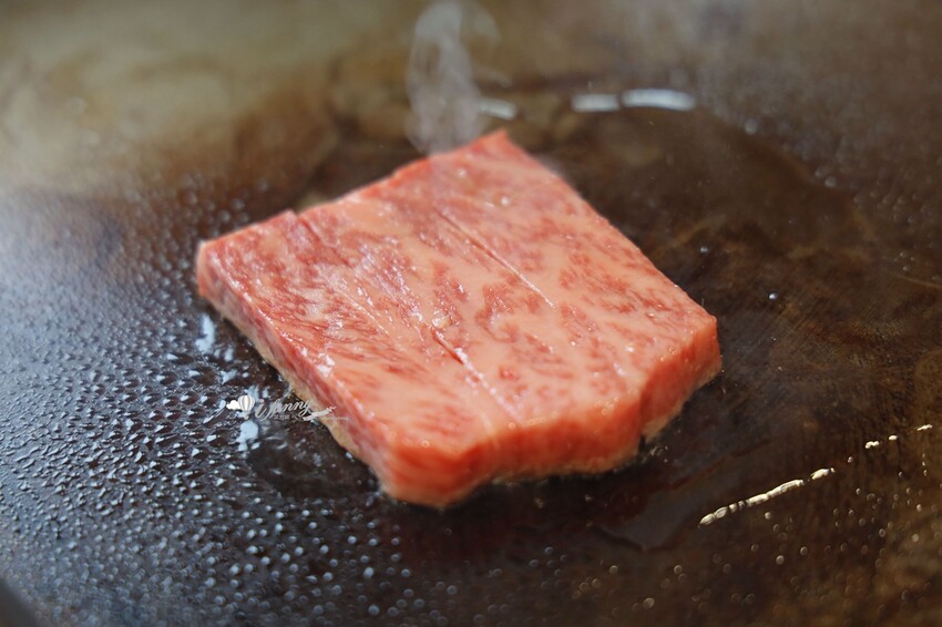 軟化的起司加上和牛的油脂,在高溫之下融合在一起。