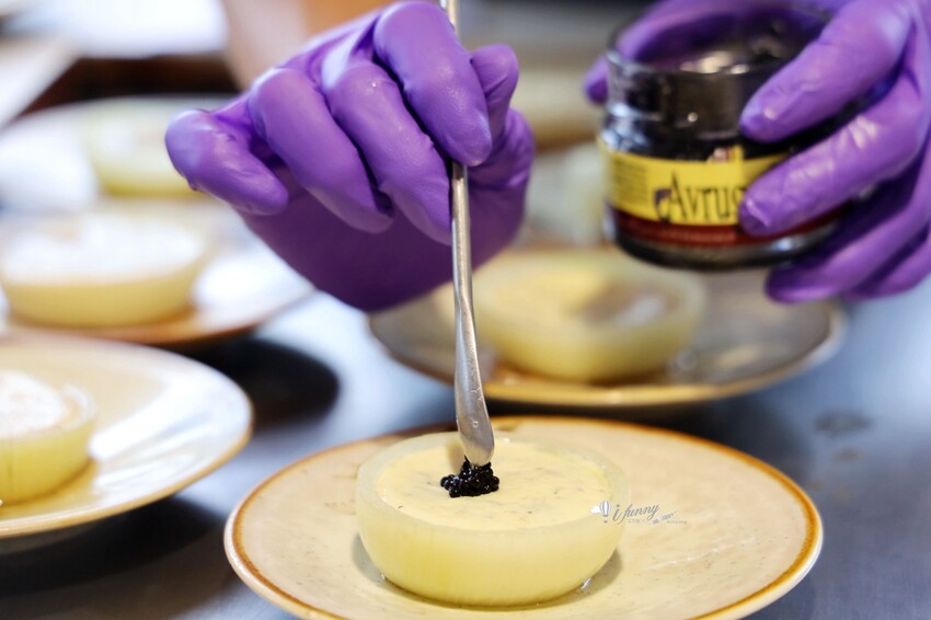 洋蔥是美國進口,相當地脆甜,以柴魚醬汁為底的蛋液,還加入了黑、白松露增添香氣,只能說這蒸蛋的味道很高雅啊!
