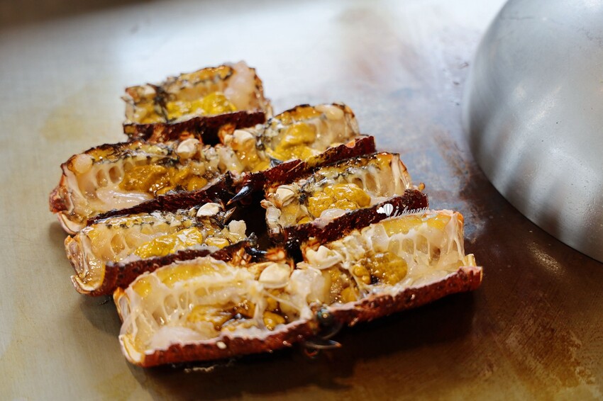 活體澳洲水姑娘龍蝦三吃,這是第一吃,將龍蝦頭保留了些蝦膏。