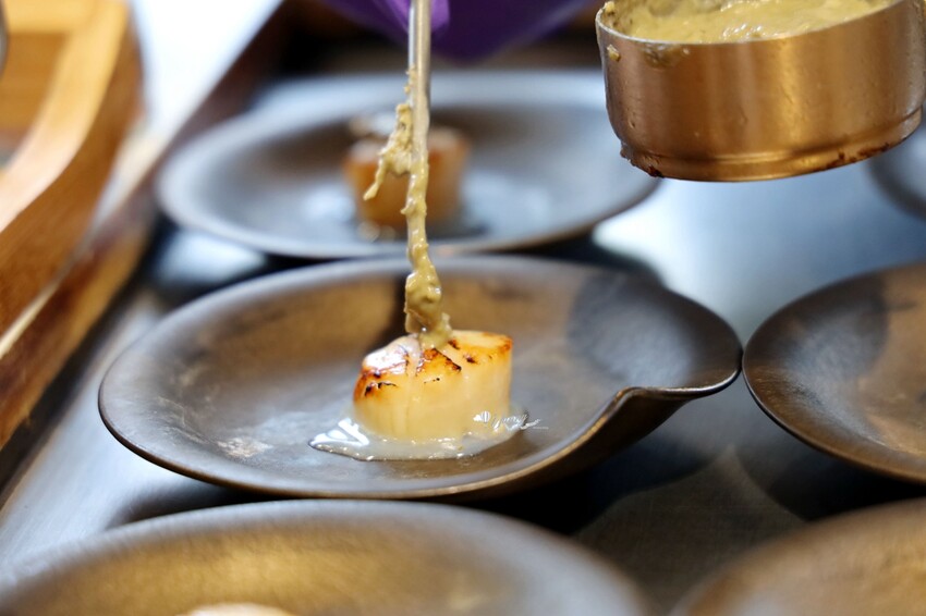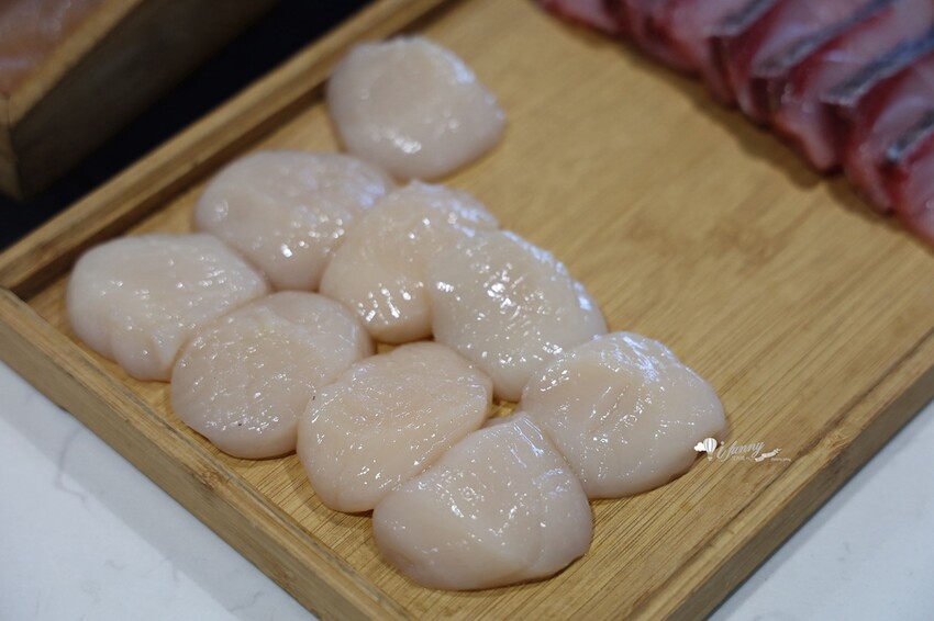碩大飽滿的北海道生食級干貝,閃耀著新鮮的光芒。