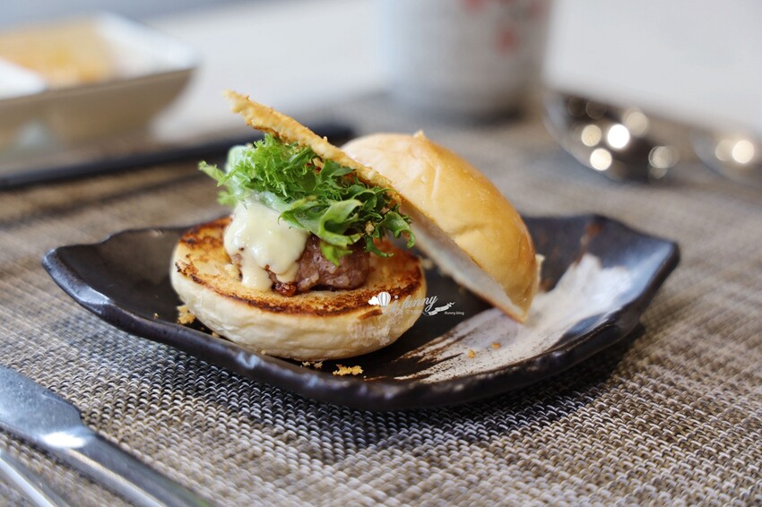 這個日本和牛漢堡雖然個頭不大,但各個細節都非常講究!首先乾煎乳酪片的香氣最為明顯,吃起來鹹香的滋味好加分。和牛漢堡肉鮮嫩多汁,吃來口感豐富,令人意猶未盡。