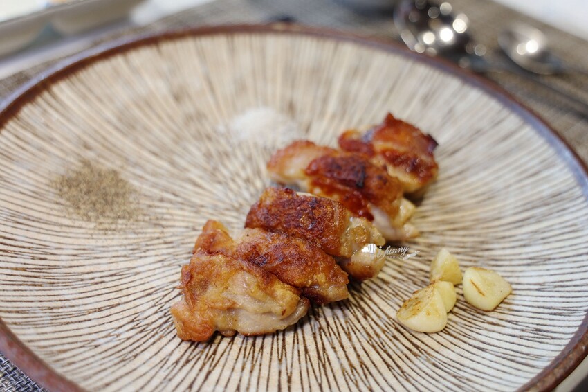 台灣桂丁雞的口感鮮美嫰口,肉質細緻,赤香的雞皮脆香可口,搭配蒜頭,令人一口接一口停不下來。