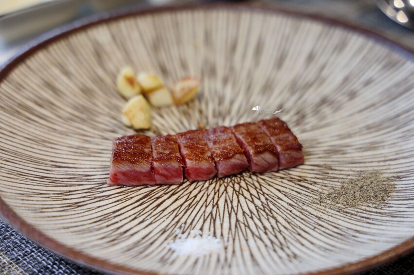 這天我們考慮拍照的時間,所以指定三分熟,微香脆的表層香氣迷人,和牛肉質細膩,油脂豐富,真的相當地美味。
