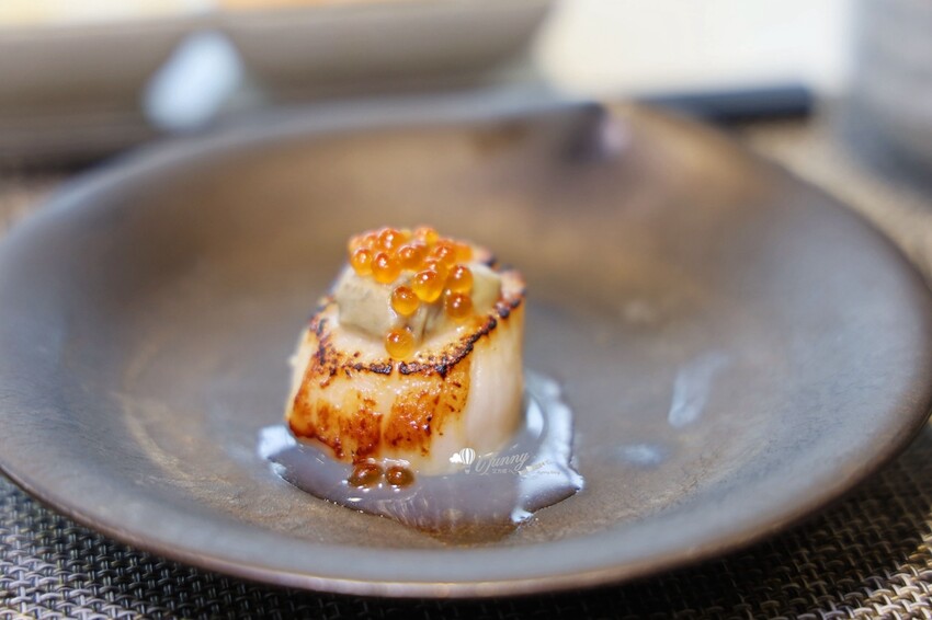 最後飾以醃漬過的鮭魚卵。三合一的海味一起在口中迸開來,吃完都捨不得把嘴巴張開來。