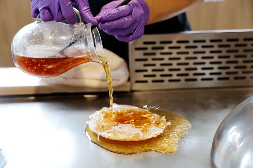 在等待龍蝦頭熟的同時,一旁師傅開始炒日本葛粉。
