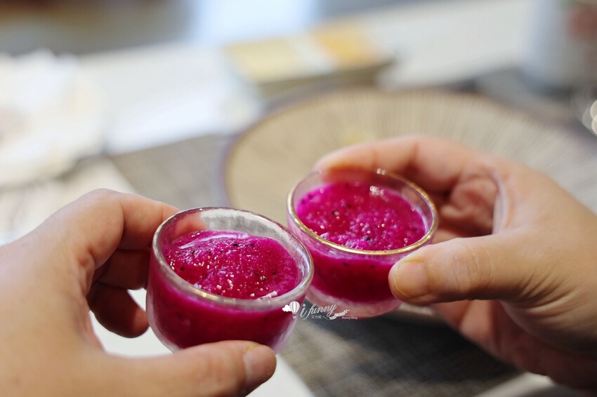 火龍果冰沙顏色特別地吸睛,口感清涼,不僅可以減少口中的油膩感,亦能重新喚醒味蕾,品嚐下一道料理。