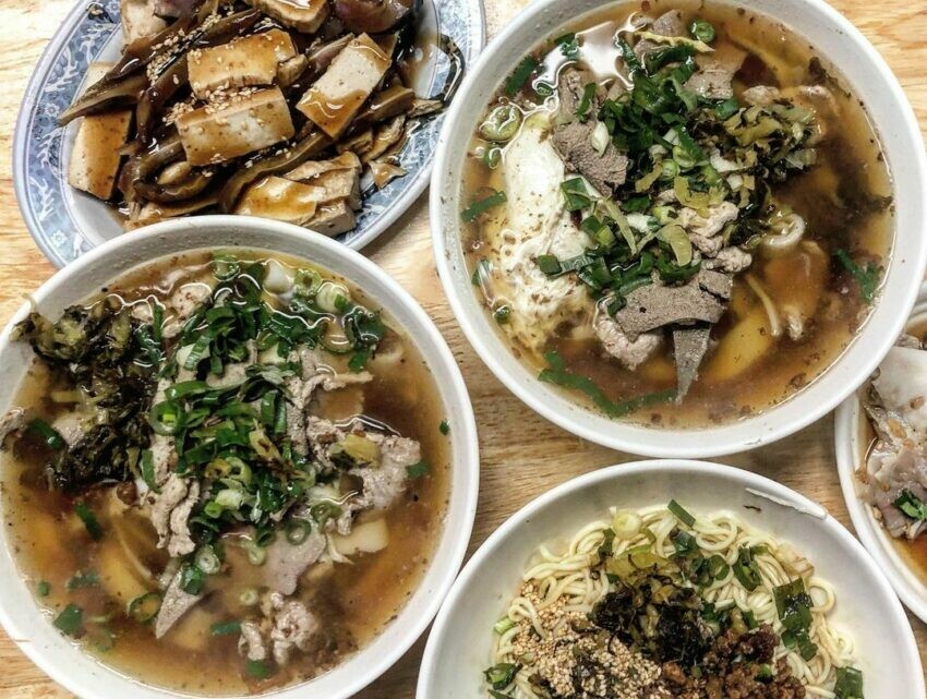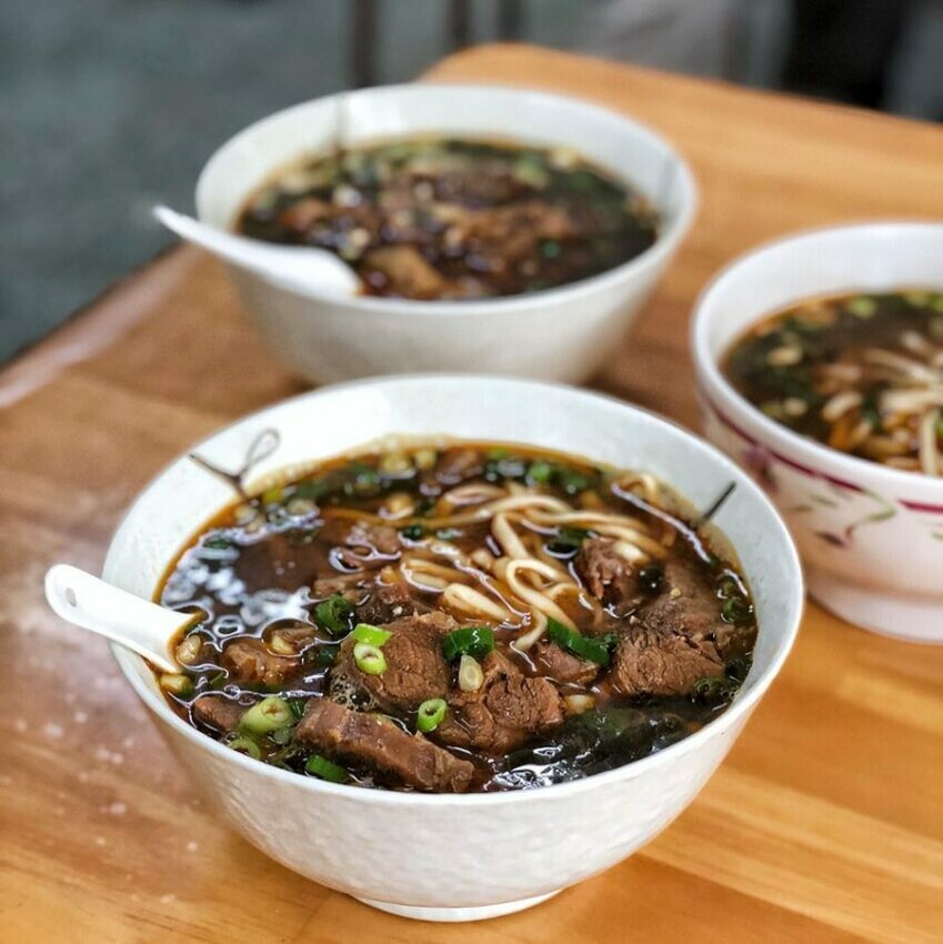 位於桃園中壢的【永川牛肉麵】是當時隨著國民政府來台的老兵所開的老店,湯頭屬於微辣的川味紅燒重口味,牛腱肉滷得入味份量也給大方,配上一瓢桌上的酸菜味道更是合拍。麵條厚實Q彈不軟爛,吃不夠還可以免費加湯加麵,即使是大胃王也能夠滿足。全年無休24小時營業,無論宵夜正餐都能來上一碗,另外建議點餐時可要求店家將湯頭做清淡些會比較符合大眾口味喔!