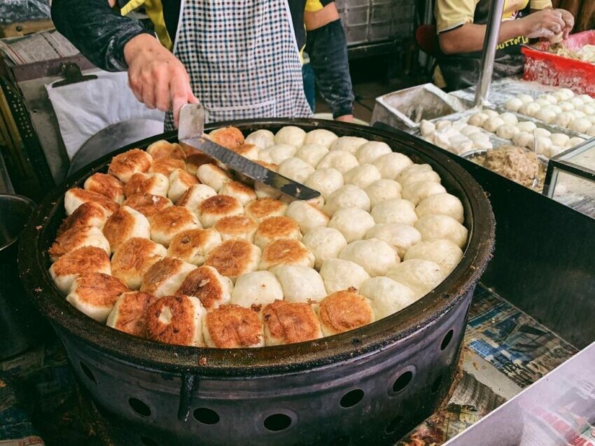 百元以下的銅板美食比比皆是,但這家【曾記老牌水煎包】或許才是名符其實的銅板美食!外皮半煎半炸酥脆金黃,內餡包入簡單的豬肉高麗菜咬下還會噴汁,一個竟然只要銅板價8塊錢,開店時間門口長長人龍沒停過,在地人總是以十個為單位不手軟的外帶,可見美味程度絲毫不打折。外皮雖然屬於偏厚型,但雙面都煎得酥脆不軟爛口感絕佳,配上內陷帶有濃濃胡椒味的豬肉一吃就上癮!>>更多中原夜市美食推薦