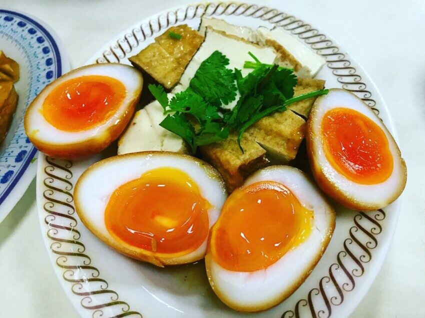 位於大溪老街的【達摩麵店】每到用餐時間總是人潮不斷,吸引大家上門的必點招牌就是切仔麵及黃金蛋了。麵條油亮軟嫩的切仔麵,搭配附上的瘦肉片讓簡單的麵吃起來更豐富,湯頭配上芹菜、青蔥、油蔥酥等,清淡卻又多層次充滿古早味。橘色吸睛的黃金蛋則是蛋黃呈現半熟糊狀,咬下後口感綿密香濃,頗有日式拉麵裡半熟蛋的感覺。肚子還有空間的話可考慮肉質肥嫩的鵝肉、外韌內軟的經典油豆腐等都是網友們推薦的菜單。