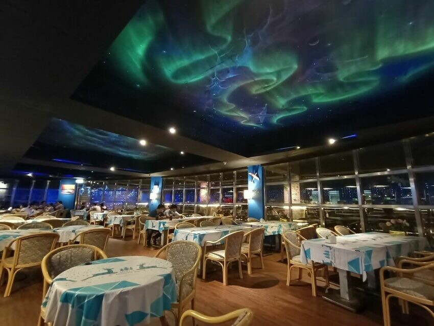觀賞飛機跑道降落的最佳選擇,大園101景觀餐廳是一間空間寬敞、供應簡餐的高樓層餐廳,設有可一覽城市和機場景觀的露天座位區,是全亞洲最高的賞機景觀餐廳。餐廳內擁有大面落地窗,天花板設計成星空彩繪的風格,頗具巧思,餐點種類豐富,排餐、火鍋、炸物、燒烤通通有~室外還有一面適合打卡拍照的裝飾牆。這裡有美食可享用、有美景可欣賞,一邊欣賞夜景,看著從機場起飛的飛機飛越,一邊享受療癒美食,是情侶晚上約會的好去處~