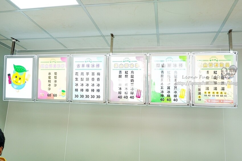 有冰沙、古早味冰棒、梨山茶冰棒和飲料,